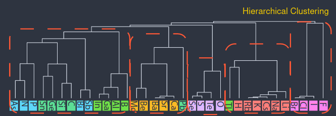 - At a very large distance, all atoms merge into a single group. The result is called dendogram.